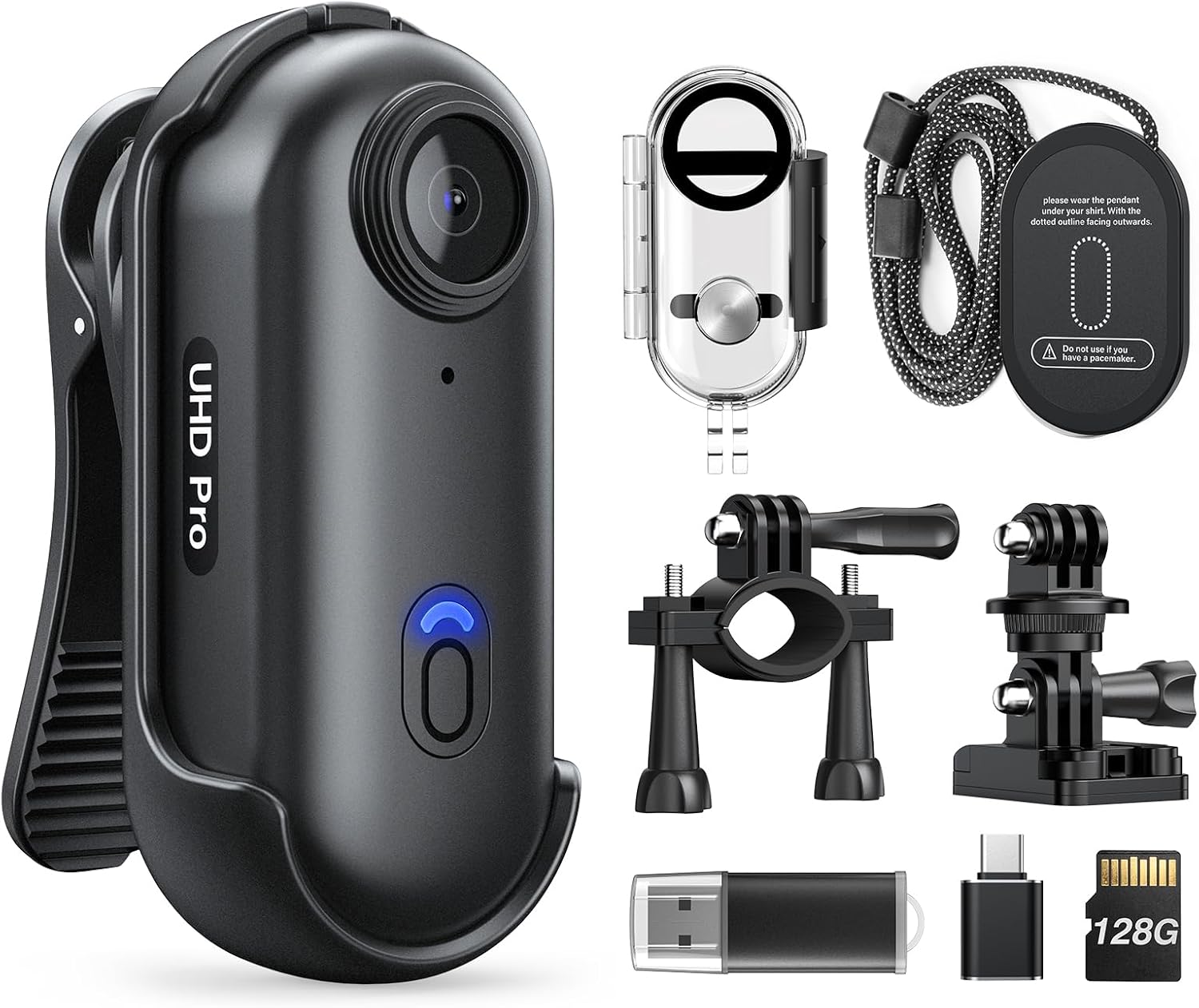 Z10 2K Action Camera, 128GB Wearable Sports Camera with Waterproof Case, Magnetic Clip, and Quick-Mount Accessories, Small Body Camera for Cycling, Diving, Travel, and Outdoor Adventures